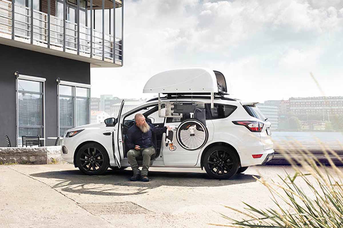 Chair Topper nostimella voit siirtää kokoontaittuvan pyörätuolin auton kattolaatikkoon.